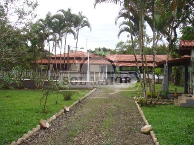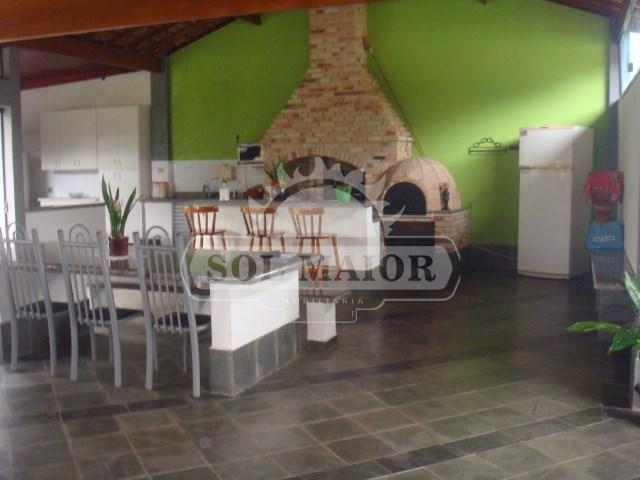 3 dormitórios, 3 wc, sala, cozinha americana integrada com salão grande com espaço gourmet com forno de pizza, churrasqueira, mesa de marmore, porta de vidro para área verde, pomar, horta, piscina, lago com peixe, capela, garagem para vários automóveis.